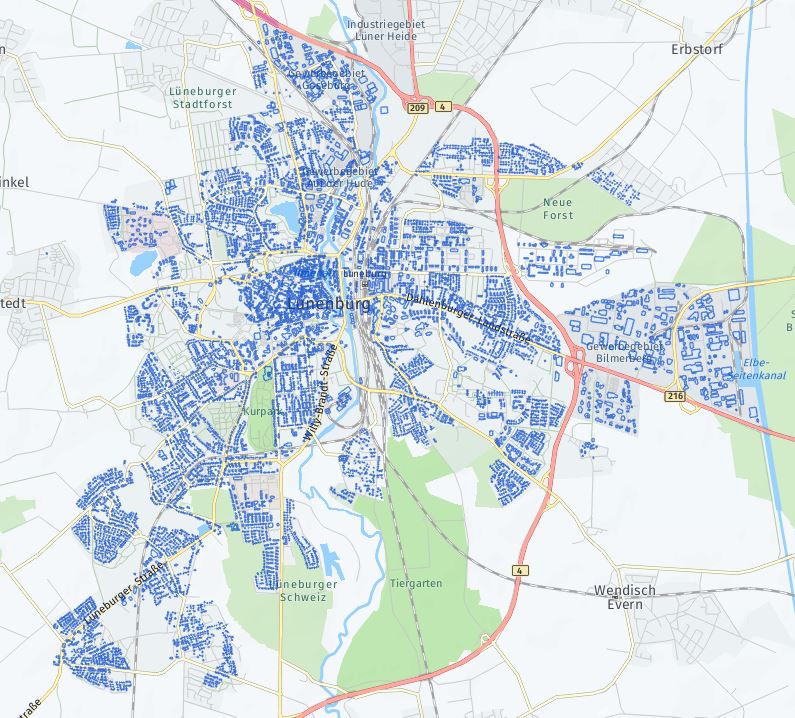 In Lüneburg gibt es nun insgesamt 10577 Gebäudeumrisse in der Karte.