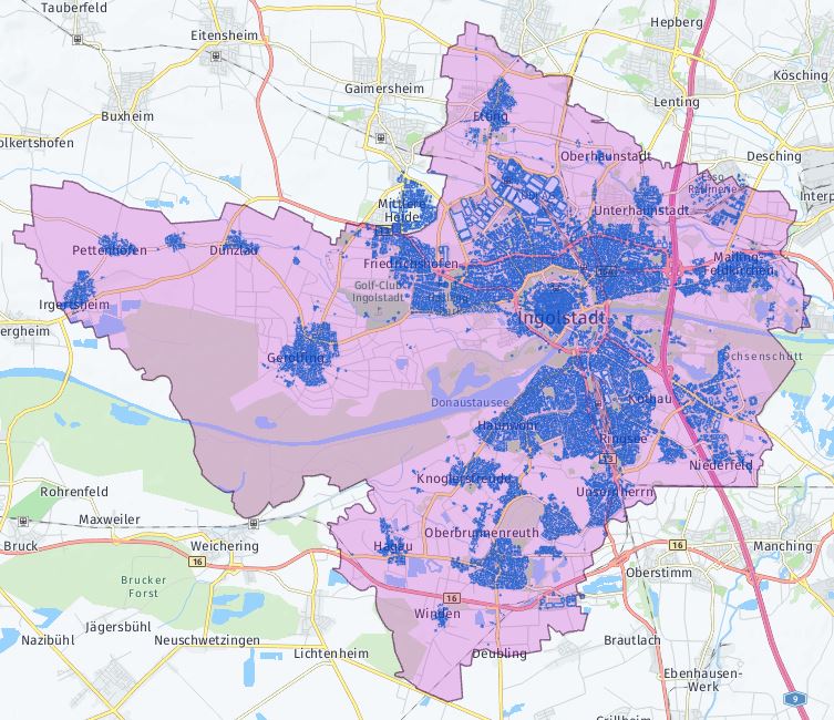 Ingolstadt (13.115 Gebäude hinzugefügt, nun insgesamt 29.234 Gebäude vorhanden):