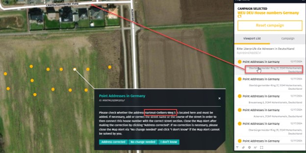 Gezählt für das Gesamtergebnis der Kampagne werden alle gelösten Map Alerts. Das heißt jeder gelöste Map Alert ergibt einen Punkt, unabhängig wie die Lösung ausfällt (Adresse korrigiert oder keine Änderung nötig).